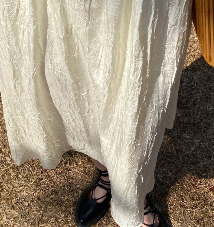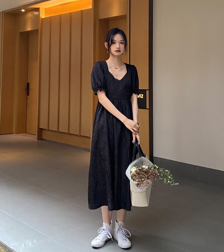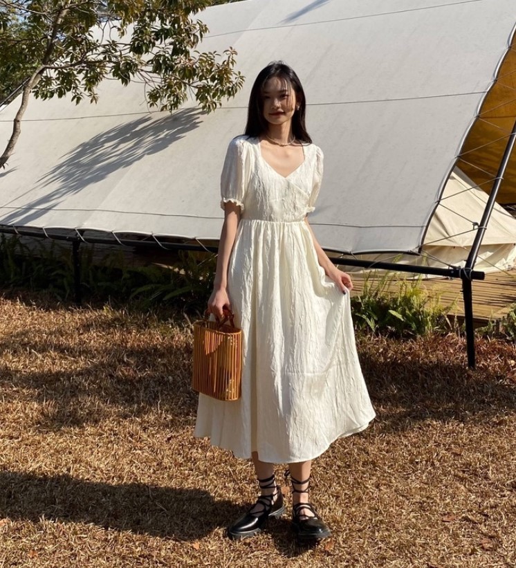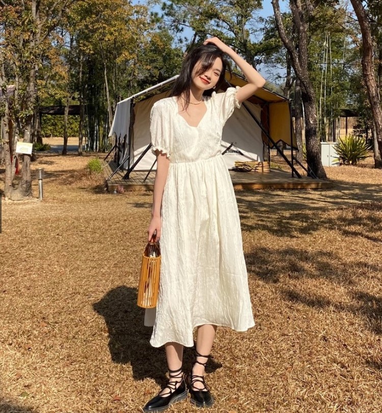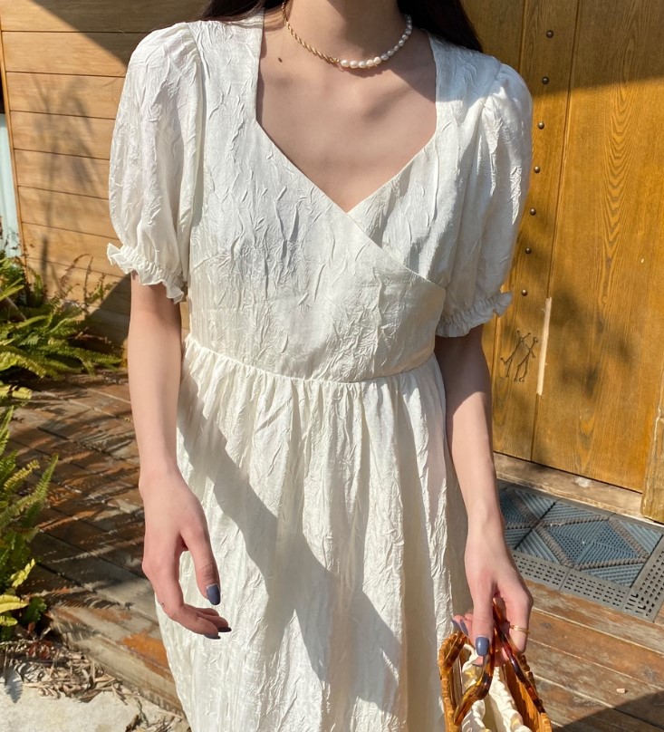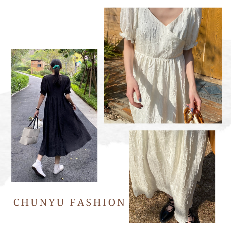 Chunyu✨ เดรสแขนตุ๊กตาปลายบานพริ้วมินิมอลกรุบ เดรสเกาหลี 21096#