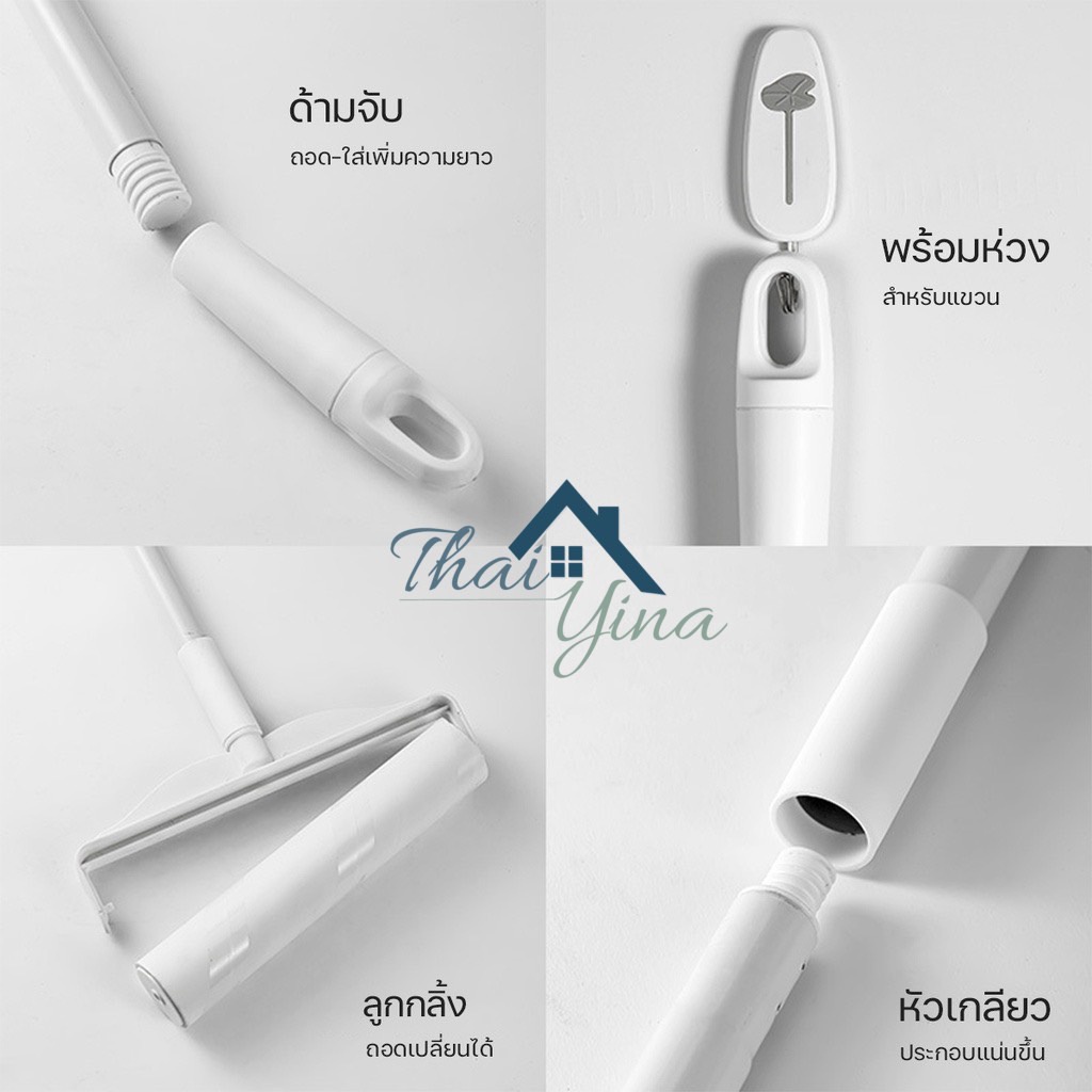 脱毛辊自带拖把孔,可调节震动-长度。产品手柄坚固耐用,使用方便-可更换胶辊,收集灰尘,收集雨水碎片。