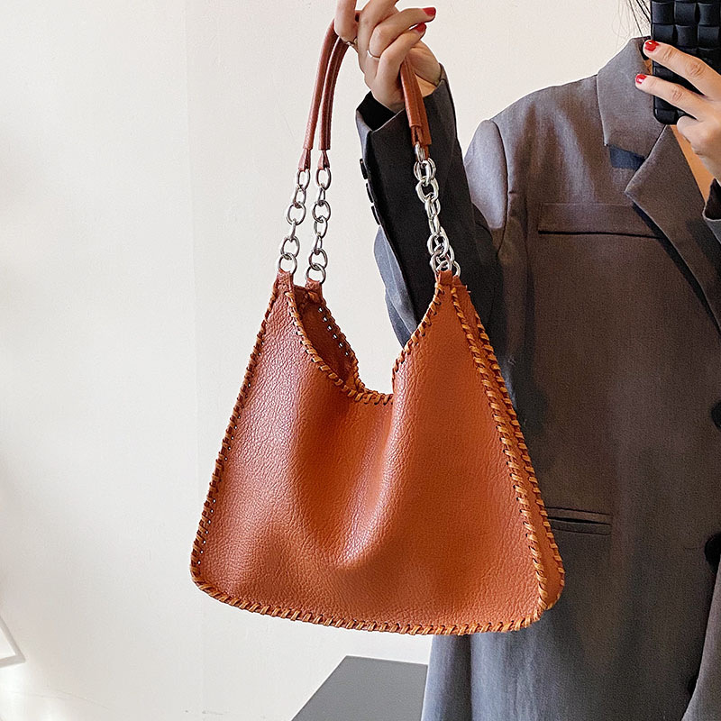 时尚潮款纯色荔枝纹爆款单肩方包网红热销通勤简约包包