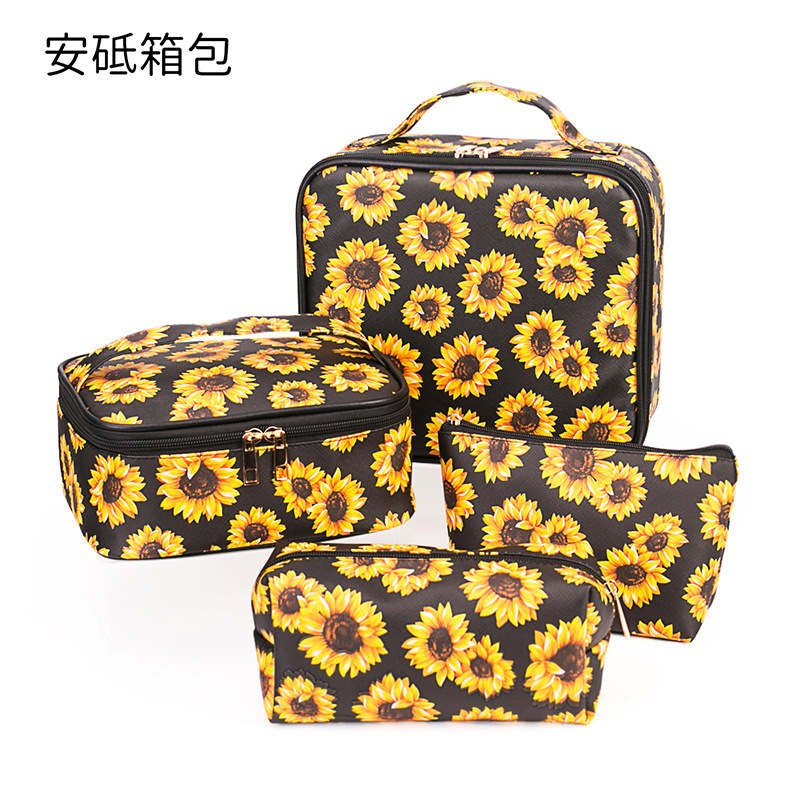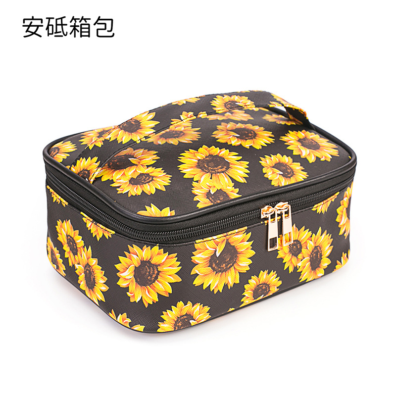 爆款向日葵经典化妆包懒人洗漱包大容量收纳包纹绣美甲化妆箱