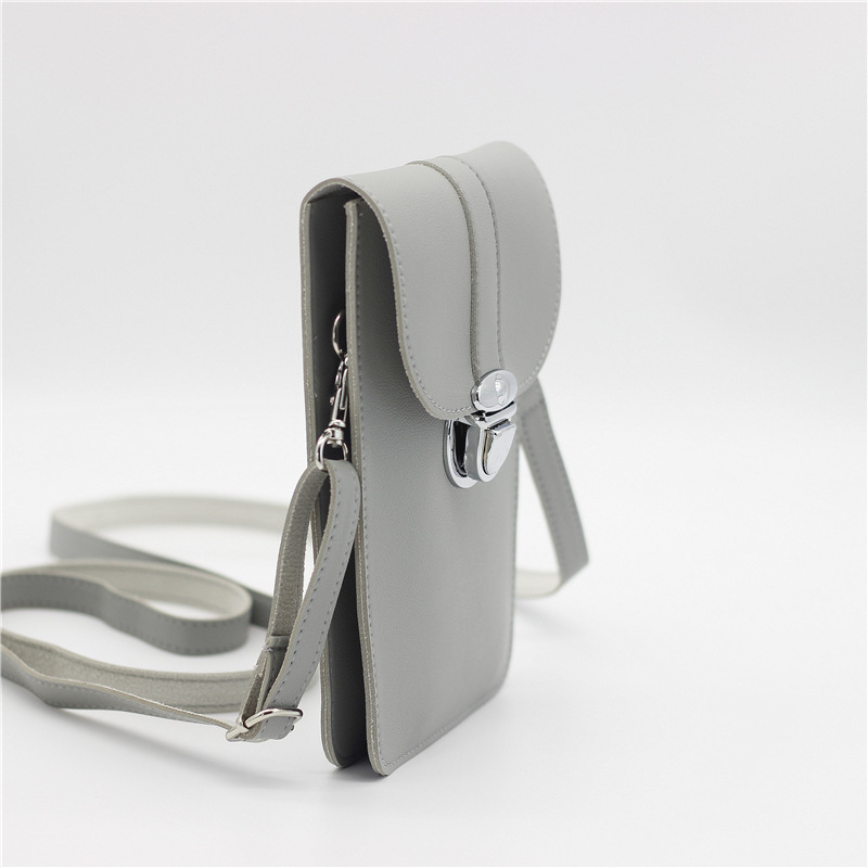 新版款现货透明膜背面触屏PU皮锁扣斜挎手机零钱包