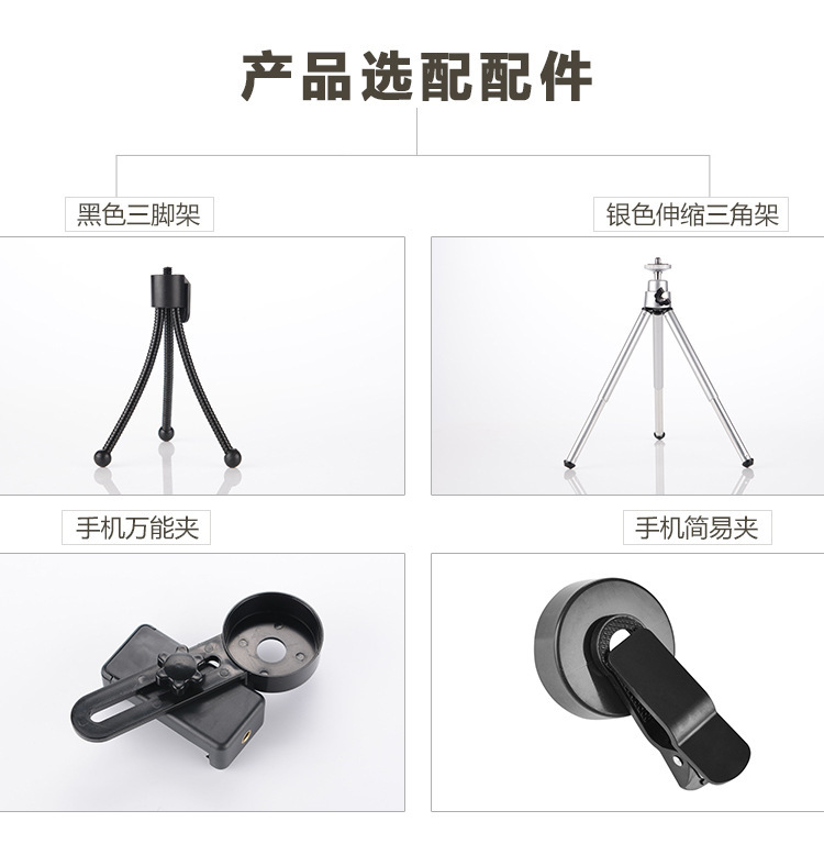 包装清单 单筒望远镜16x50/12X42/10X42微光夜视可连接手机拍照