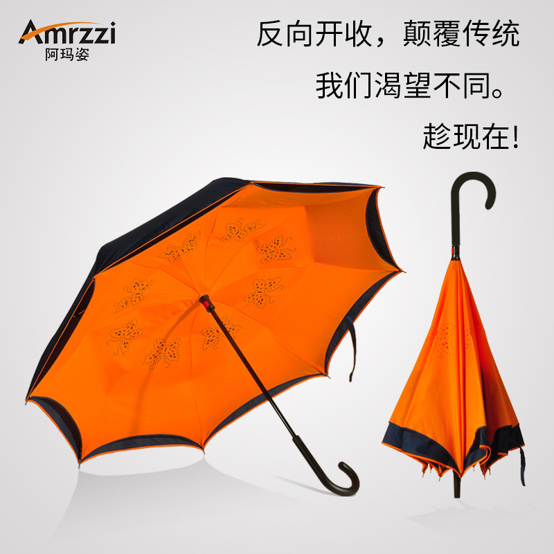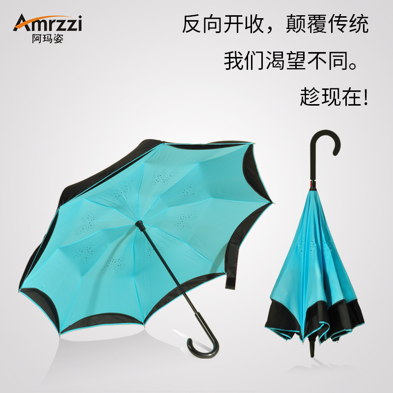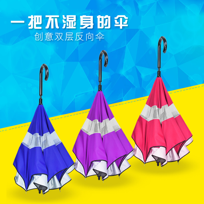 汽车反向C型免持式双层晴雨两用反折太阳折叠广告伞