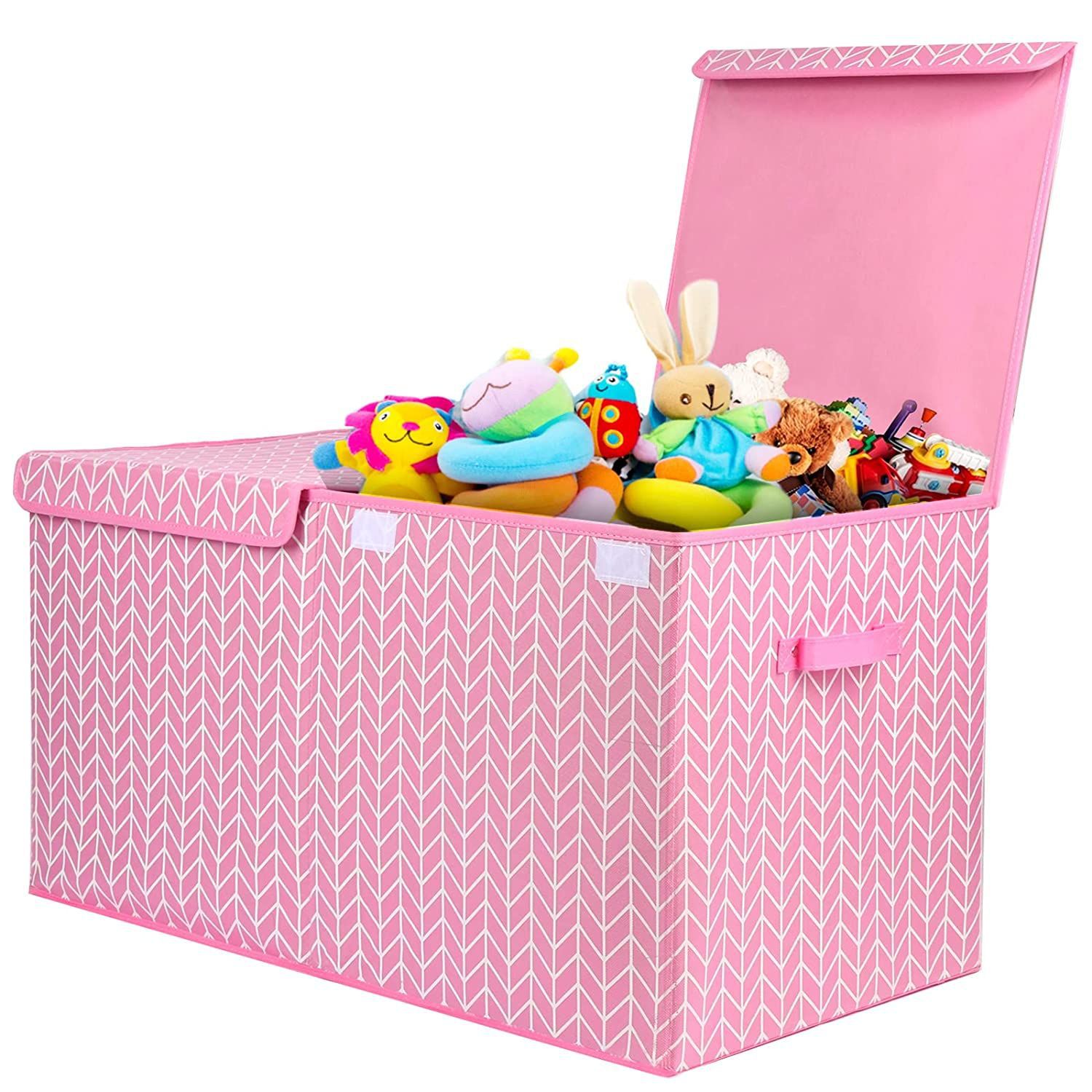 逊儿童玩具收纳箱,无纺布印花可折叠带翻盖加大号收纳箱