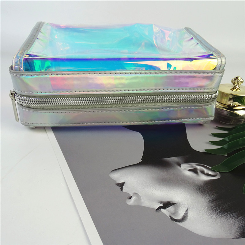 Laser waterproof PU cosmetic bag with large capacity, portable and multi-function washing storage bag customized by the manufacturer