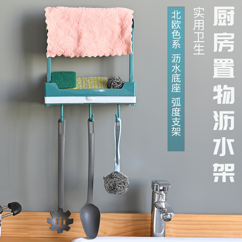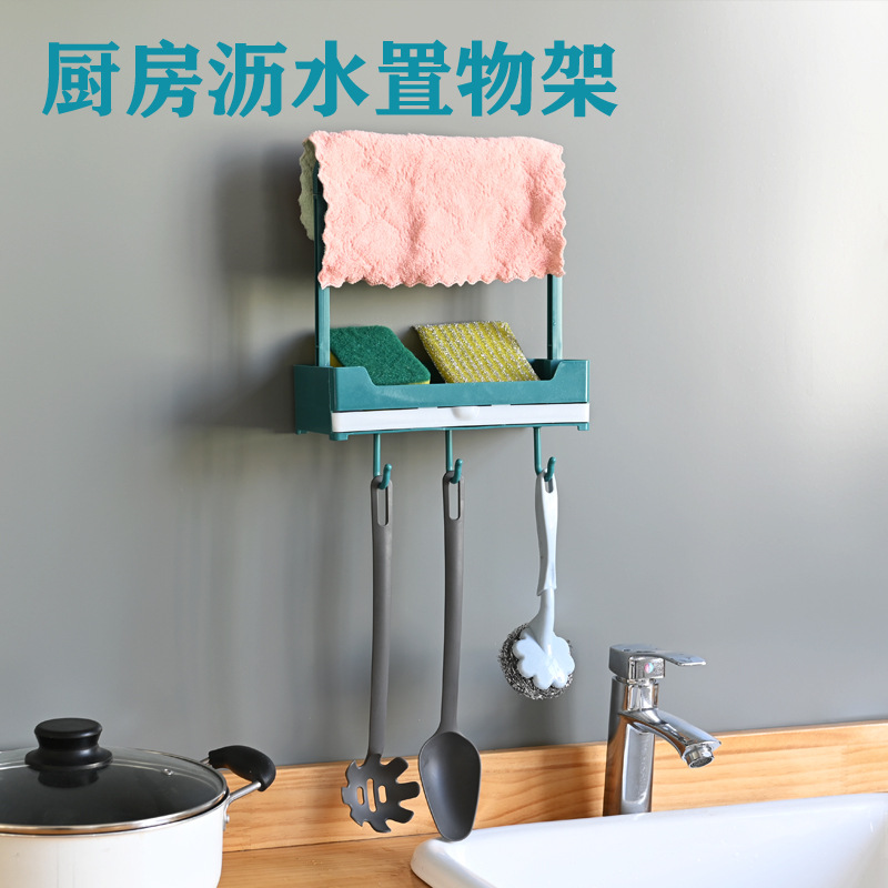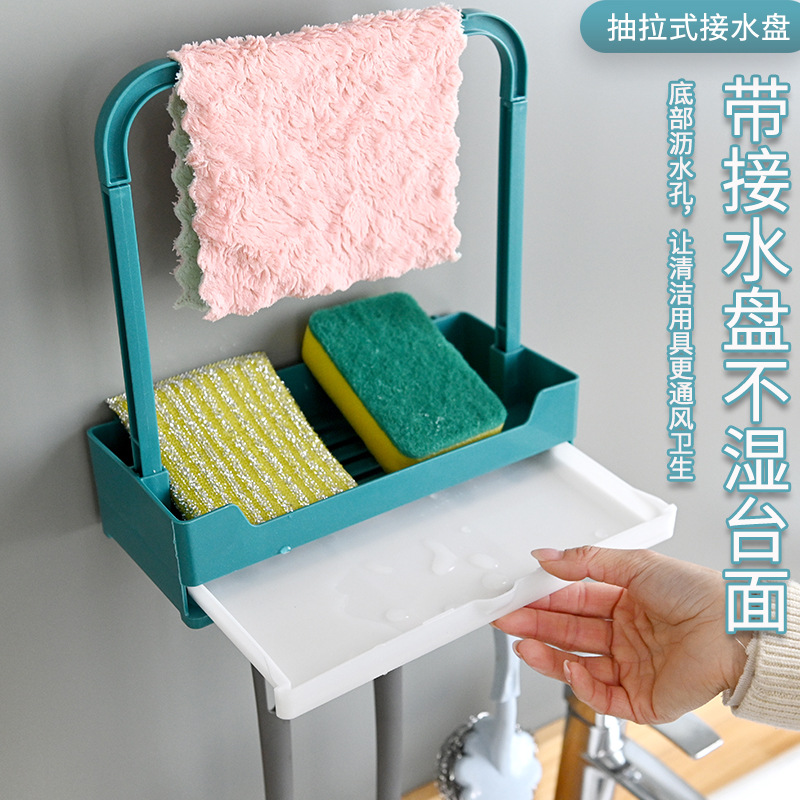 亚马逊免打孔厨房置物架 抹布架海绵沥水挂架家用