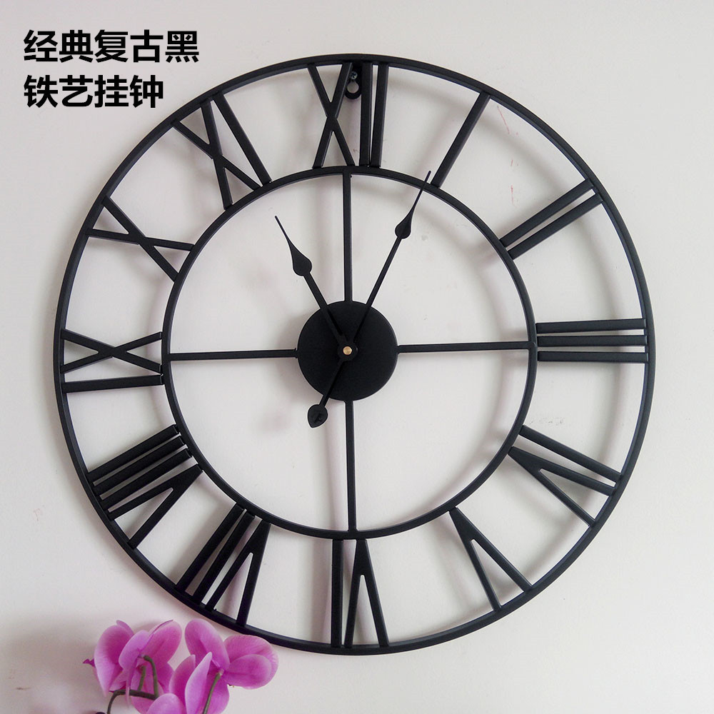 厂家直销复古罗马钟表欧式铁艺挂钟圆形创意时钟亚马逊卖
