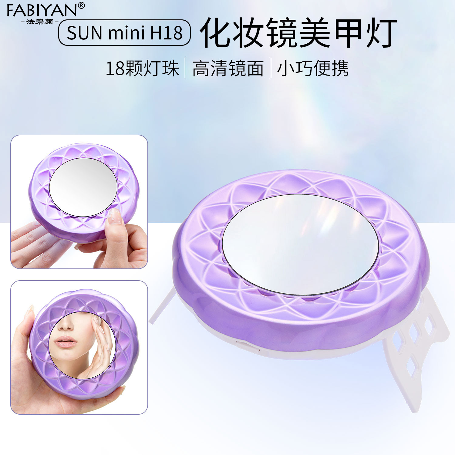 美甲光疗灯 指甲手持便携带化妆镜小型烘干mini光疗机USB