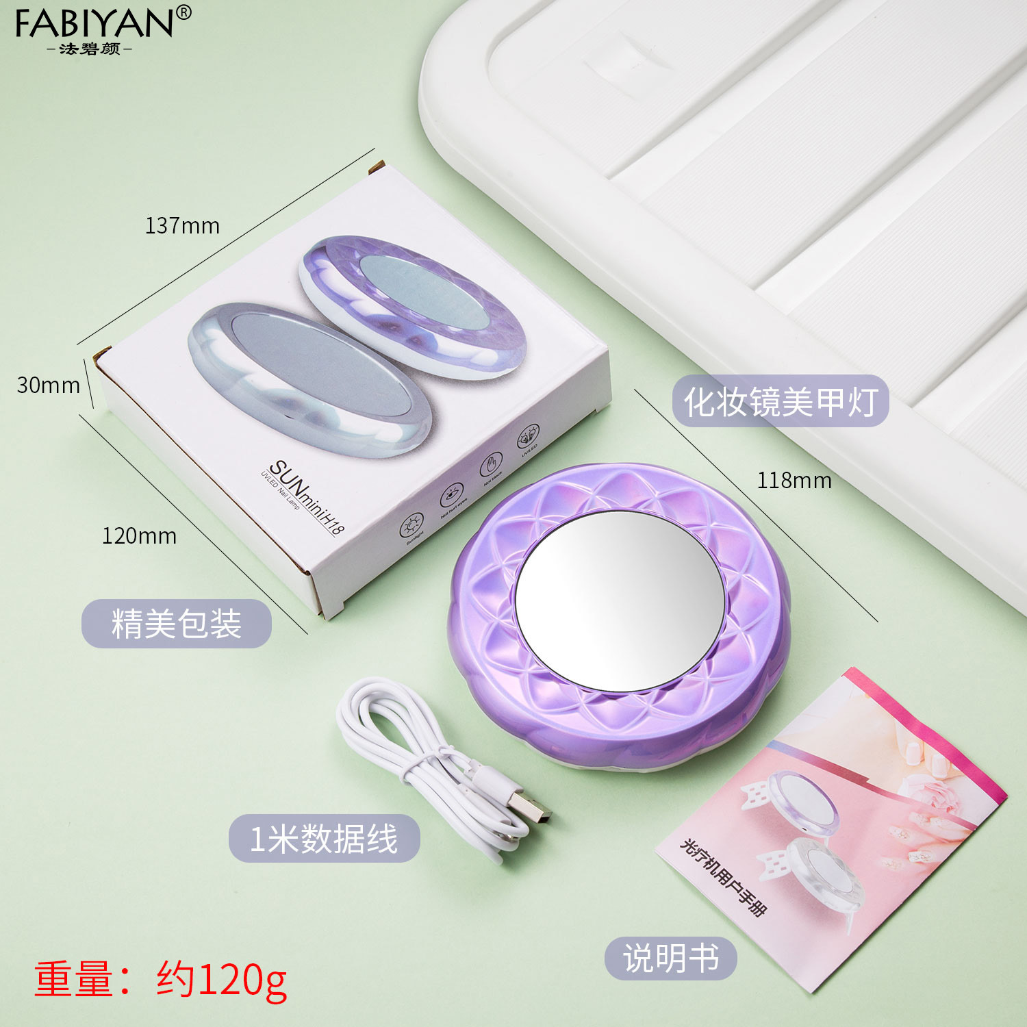 包装清单 美甲光疗灯 指甲手持便携带化妆镜小型烘干mini光疗机USB