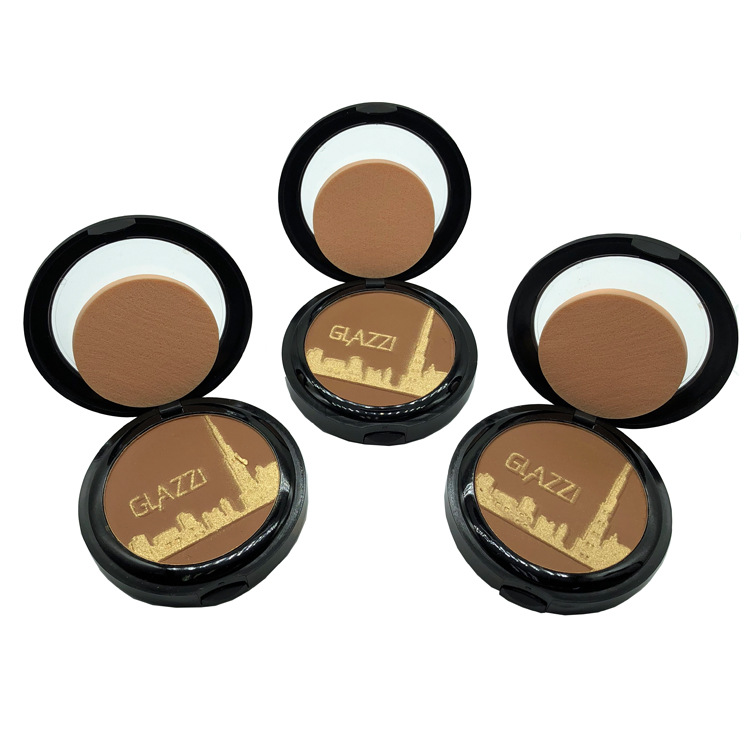 外贸GLAZZI粉饼高光三色阴影修容组合侧影粉喷金粉粉饼彩妆