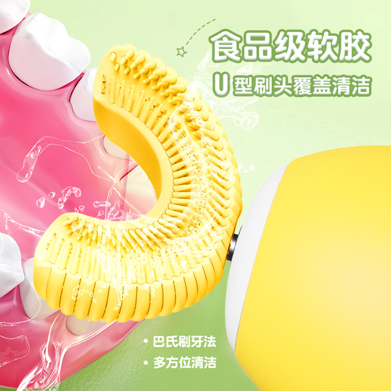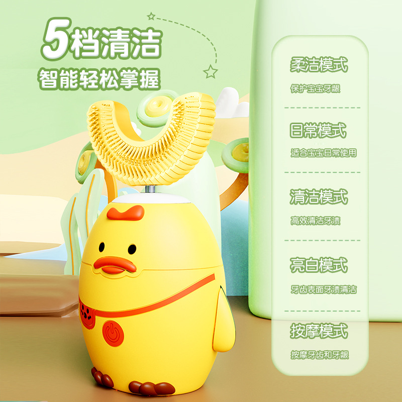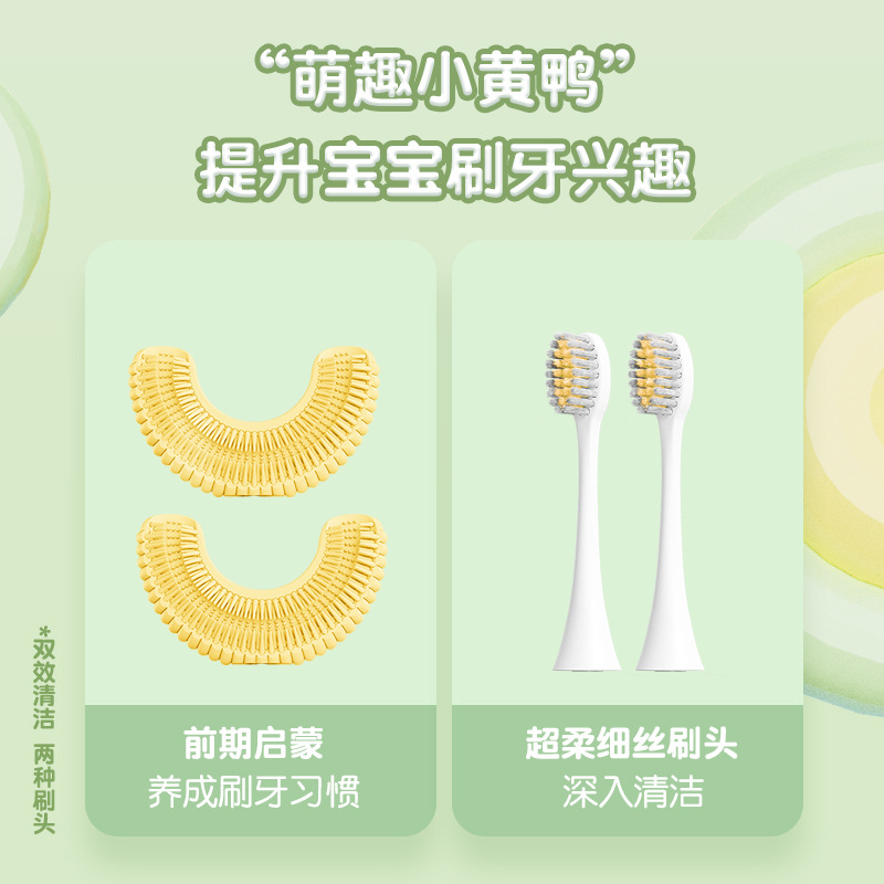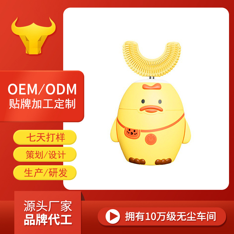工厂加工定制 小鸭子儿童电动U型智能电动牙刷硅胶刷头