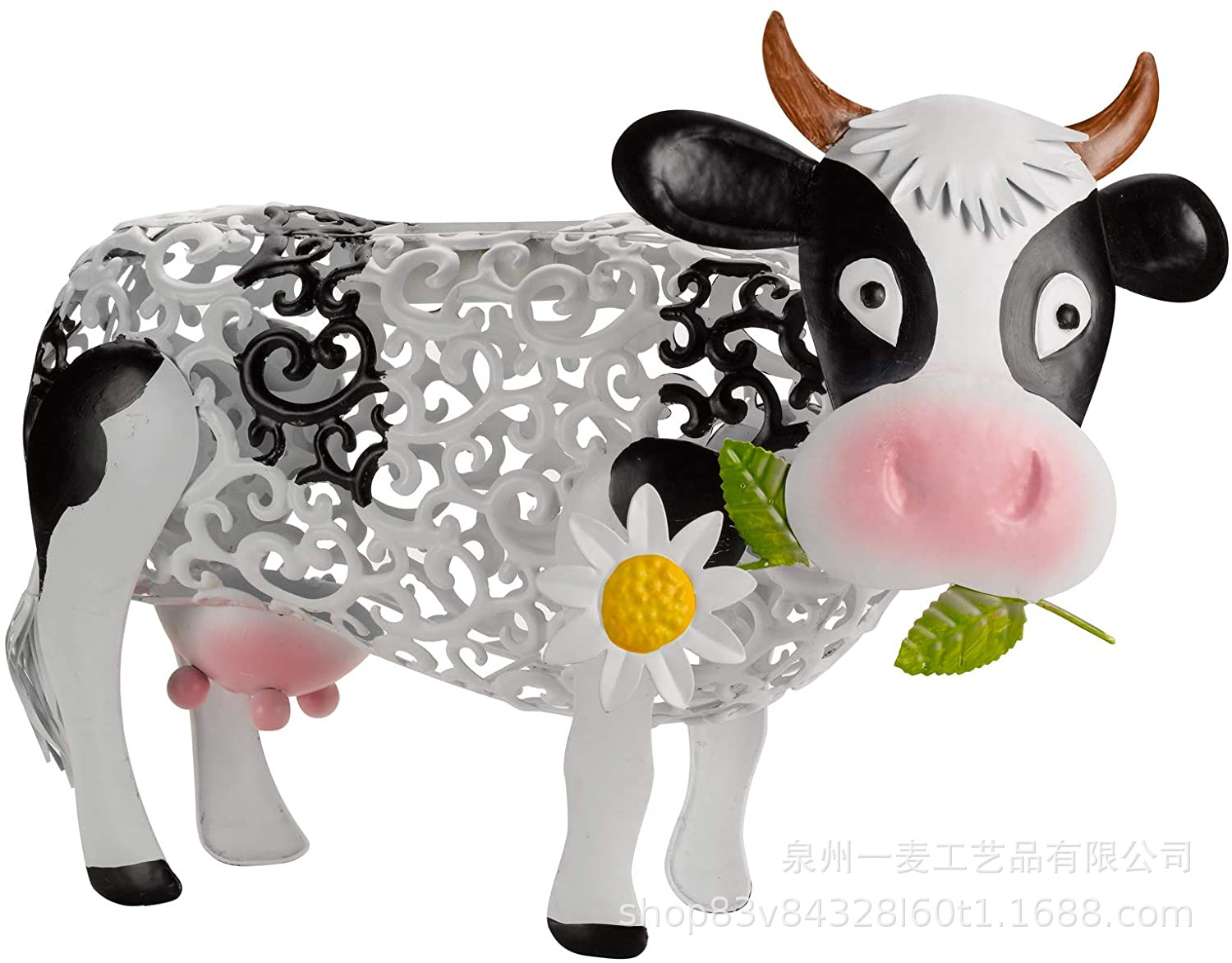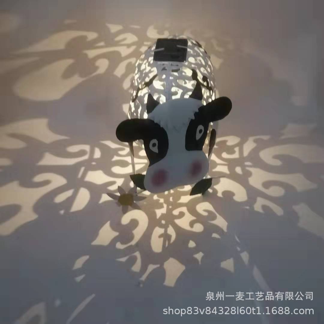 跨境爆款太阳能奶牛金属铁艺镂空奶牛户外庭院花园草坪装饰奶牛灯