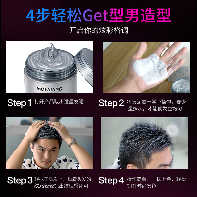 Three Magician Grannies Grey Hair Mud Color Hair Wax 9 Color Cross-border Popular Hair Gel Foreign Trade Supplies