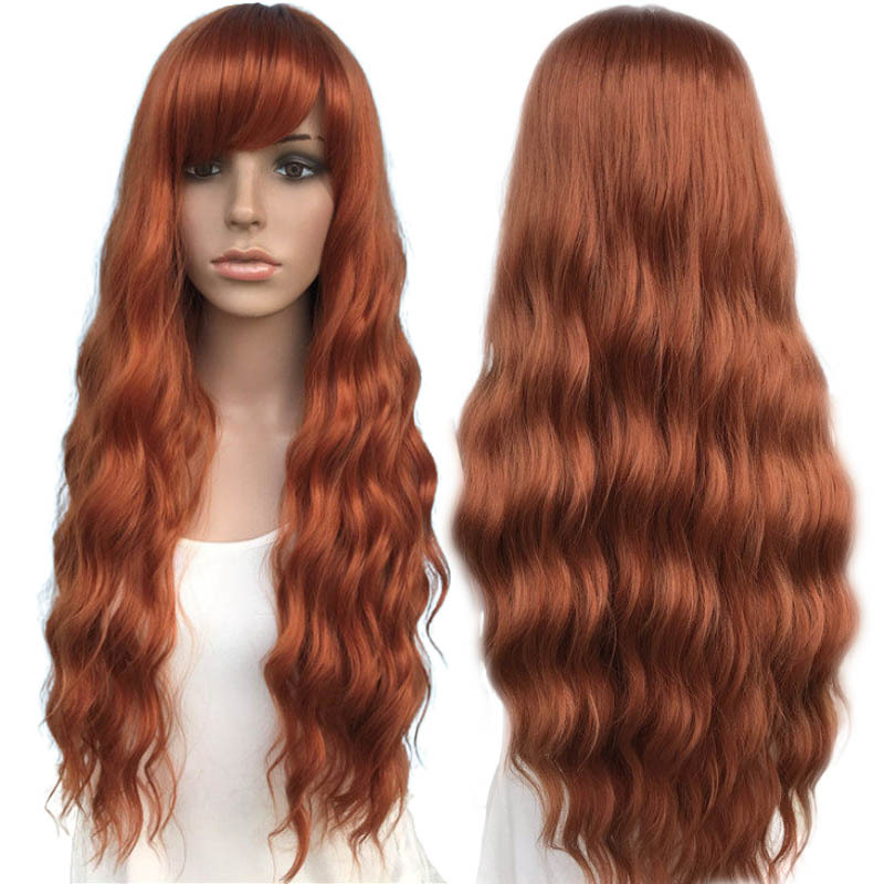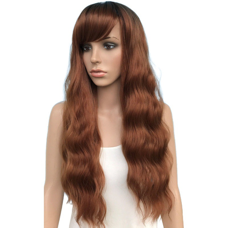 包装清单 欧美假发爆款跨境长卷发机制化纤头套大波浪玉米烫金色发套厂直销
