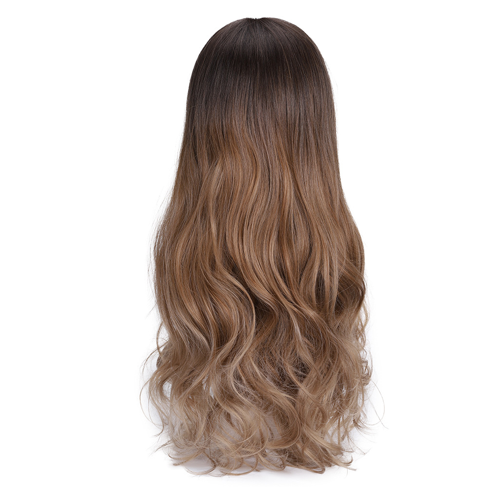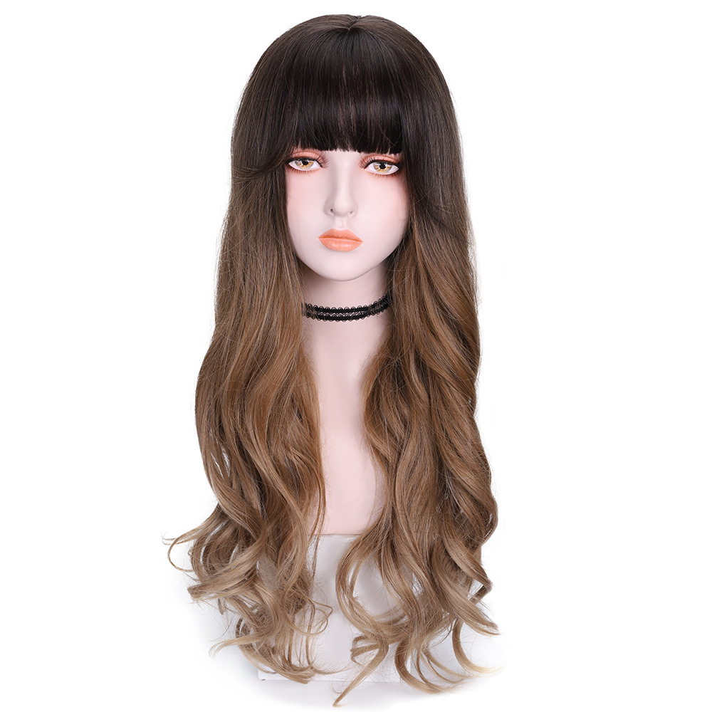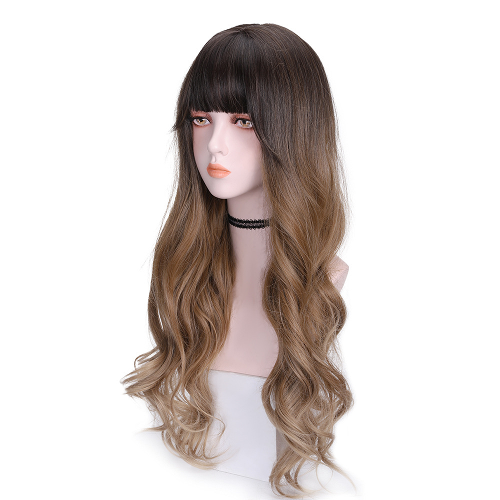 假发女长发空气刘海圆脸女整顶全头套式卡其渐变长卷发