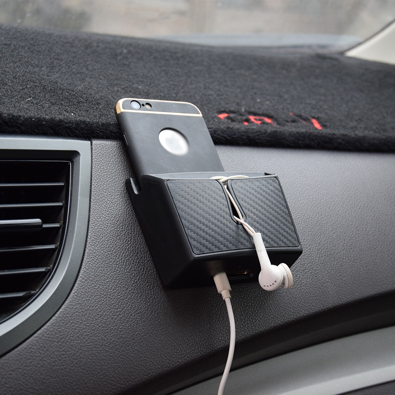Car stick-on carbon fiber car storage box Car storage bag Car mobile phone box can be reused