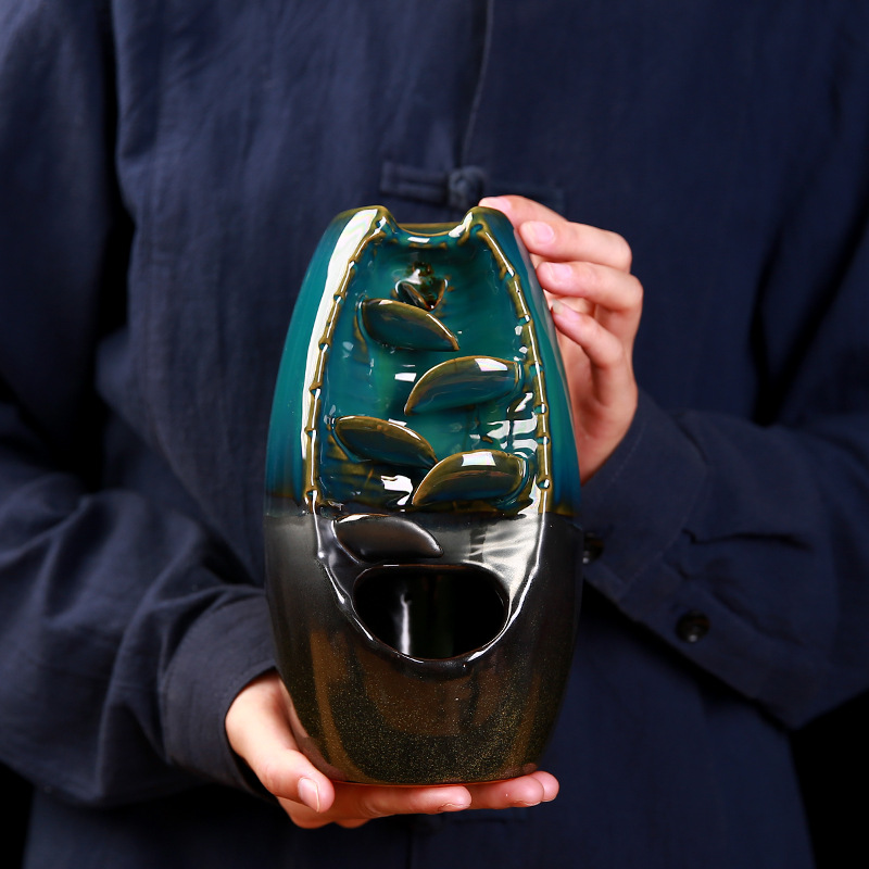 大号左右逢源倒流香炉复古窑变蓝色香炉创意家居摆件跨境香炉爆款