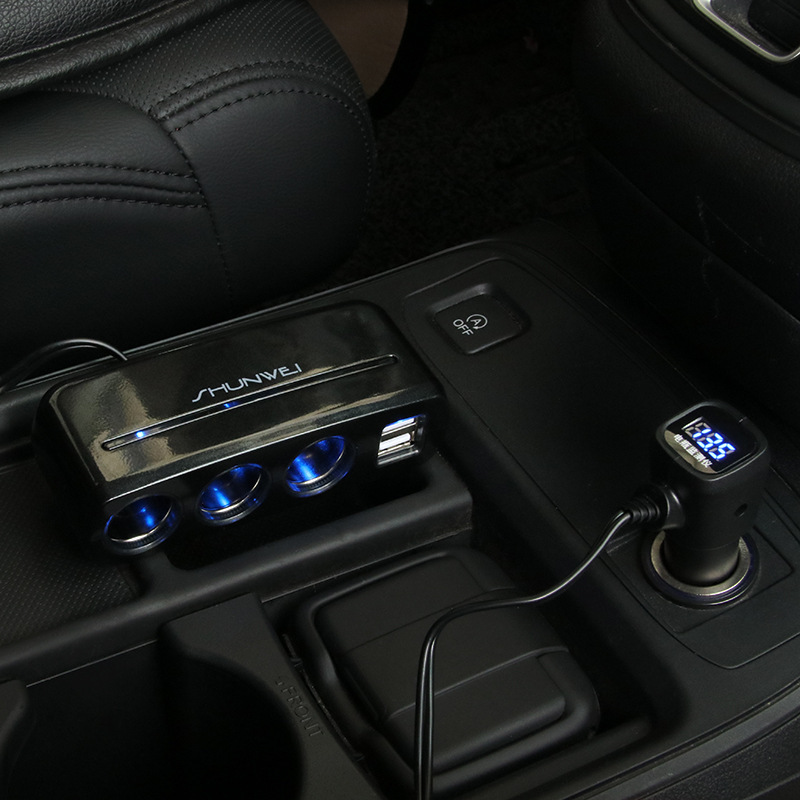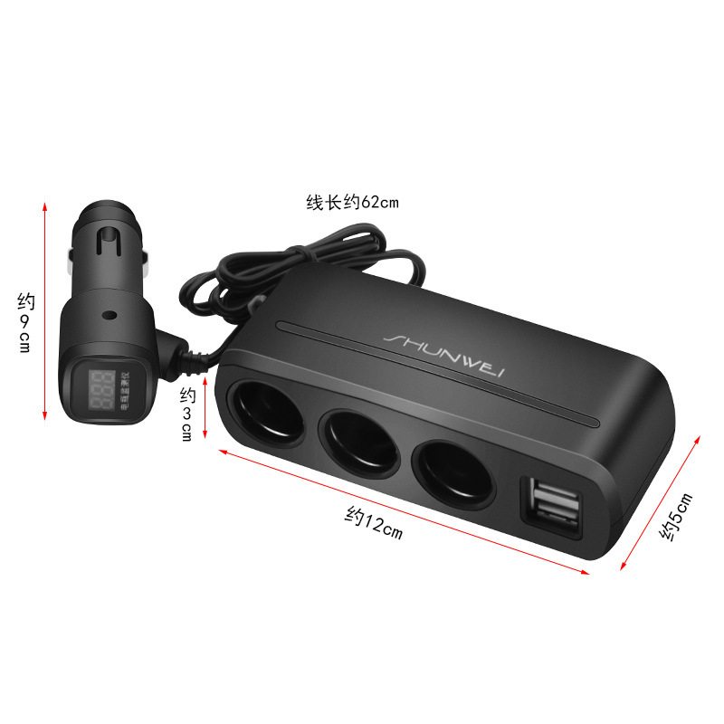 舜威 带电压监测车充双USB车充 独立开关一分三点烟插座SD-1939C