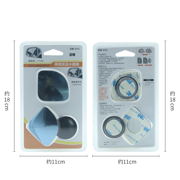 包装清单 高清玻璃360度调节无边框汽车小圆镜无边扇形盲点镜广角镜DM-074