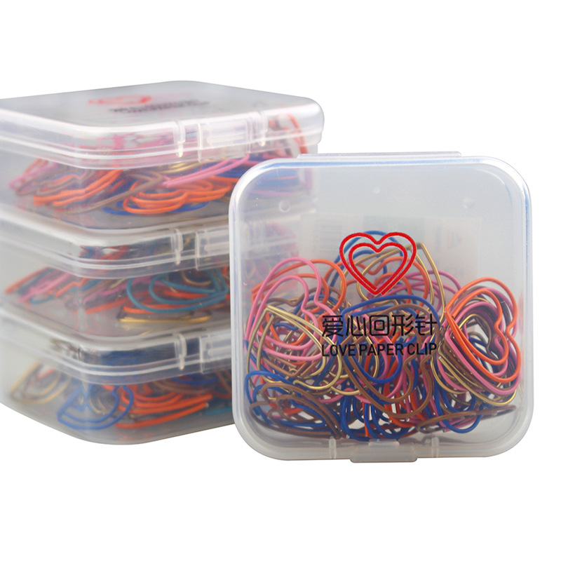 跨境爆款创意套装回形针彩色爱心金属曲别针异形书签50个盒装现货