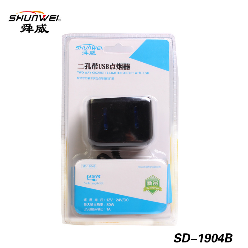 SD-1904B 二孔带USB点烟器 一分二汽车电源分配器 USB充电器| 包装清单 | SD-1904B 二孔带USB点烟器 一分二汽车电源分配器 USB充电器 |