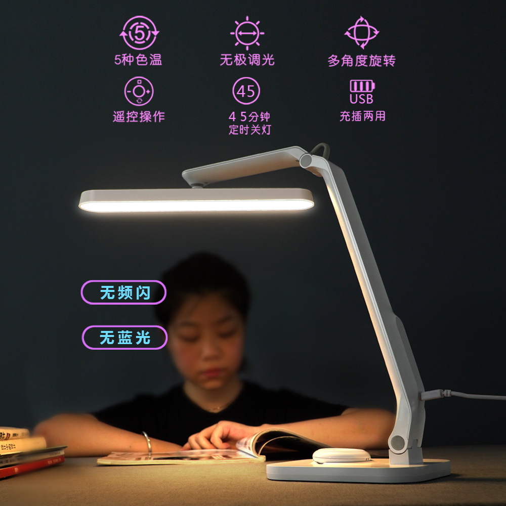 插电款 折叠台灯学生用学习护眼usb灯白色LED宿舍简约寝室灯