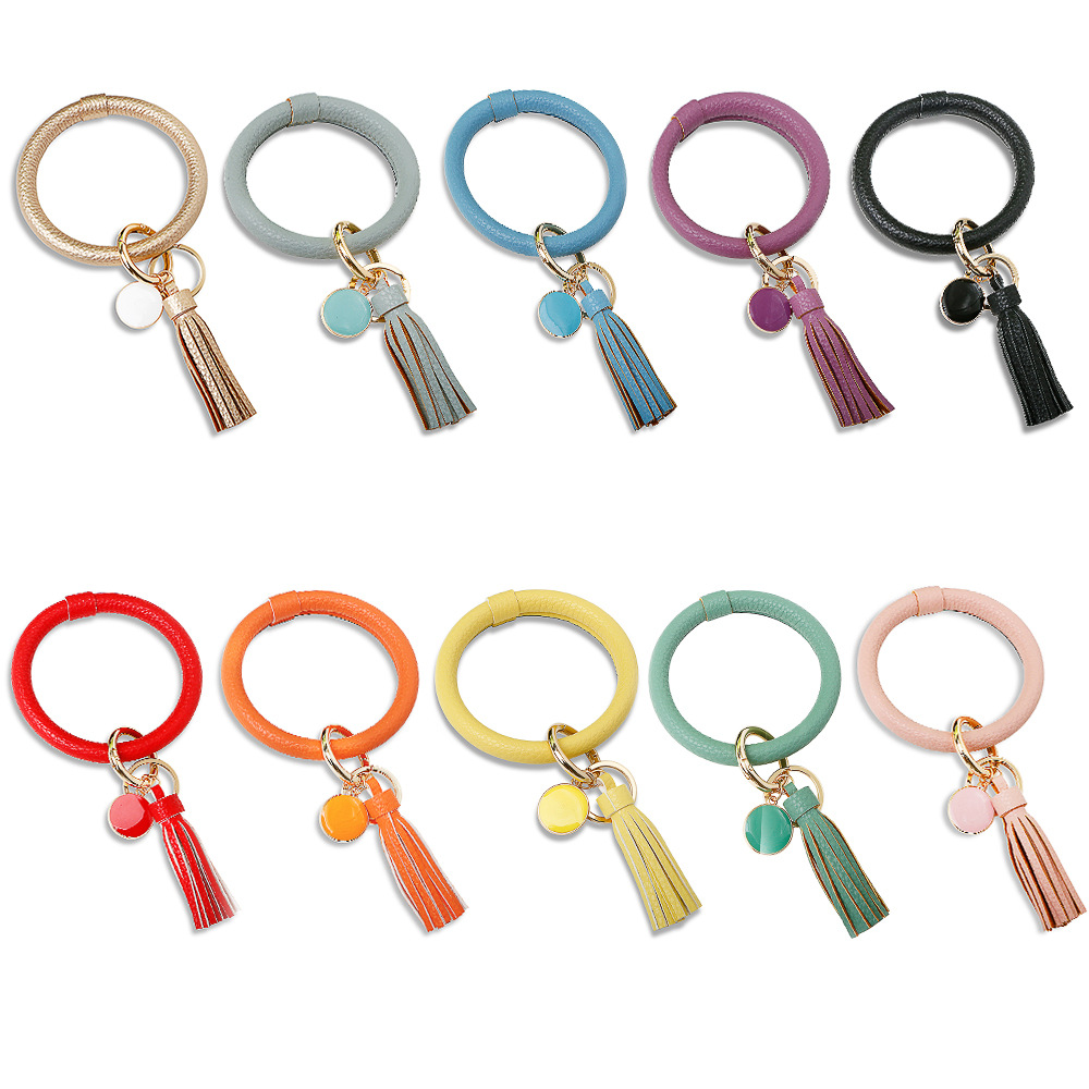 Packing list 跨境爆款欧美手腕手镯钥匙扣挂件PU流苏皮革手环钥匙圈女厂家直销