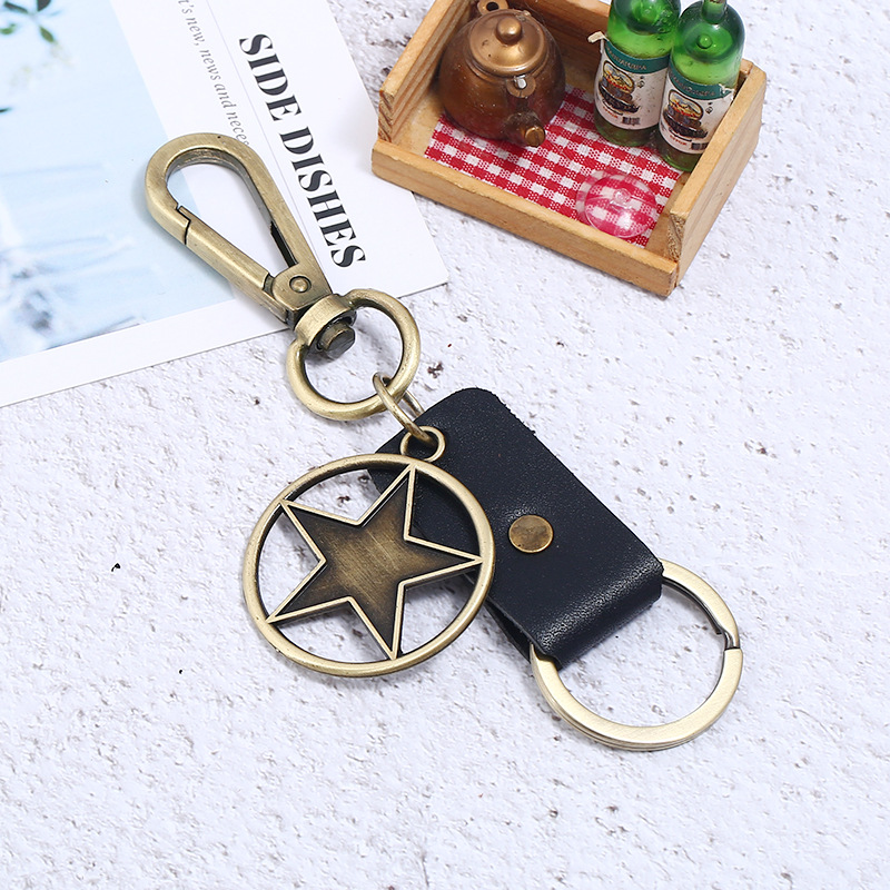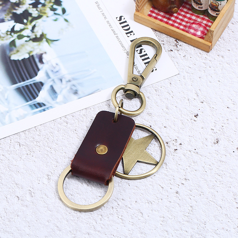 跨境爆款复古合金老鹰真牛皮钥匙扣工厂货源旅游区赠品一件代发