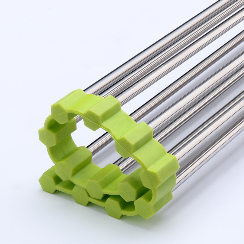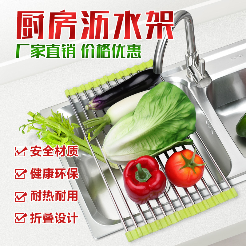 厨房水槽沥水架沥水蓝水池硅胶洗菜盆可折叠洗碗卷帘厨盆架滤水垫