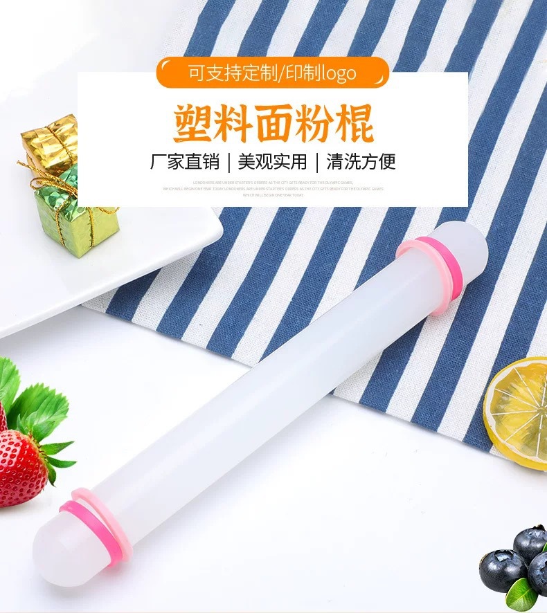 包装清单 DIY烘焙蛋糕工具塑料PP不粘面棒带圈23cm糖皮不粘擀面杖蛋糕烘焙