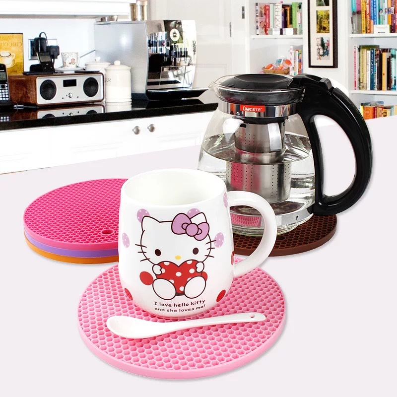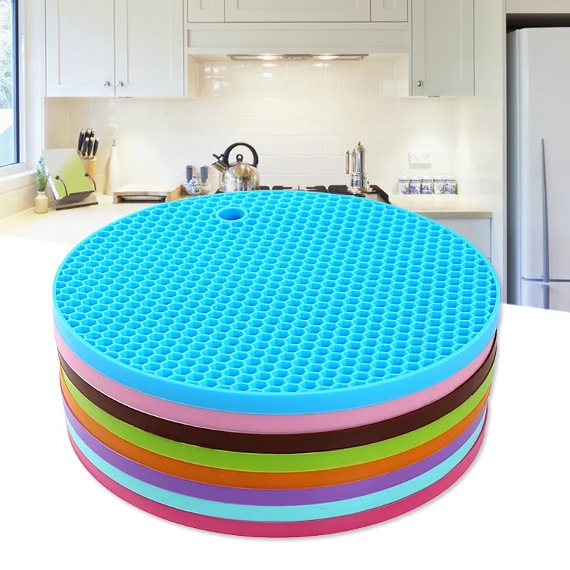 圆型蜂窝硅胶隔热餐垫 厨房防滑防水餐盘垫 防烫砂锅垫 加厚款