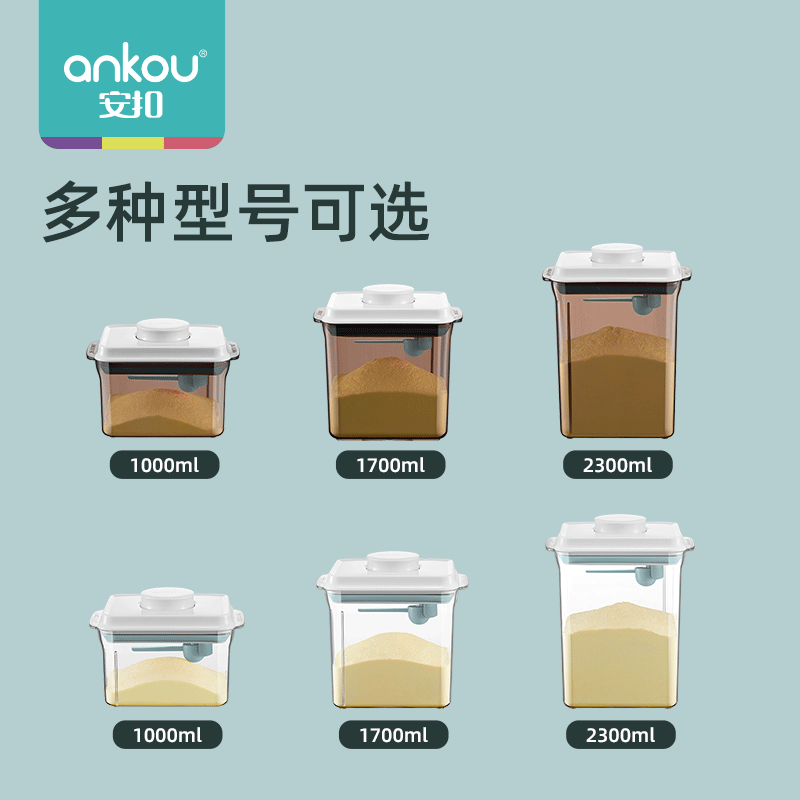 ankou安扣一键式储物罐 茶色塑料奶粉盒密封罐便携 装防潮奶粉罐