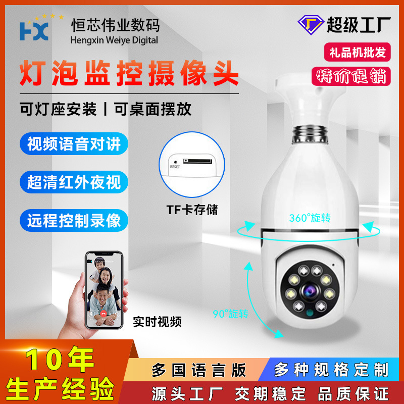 新型灯泡监控摄像头家用室内无线wifi远程智能高清夜视监控器工厂