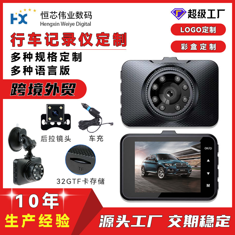 外贸高清夜视记录仪支持方案定制车载dvr影像双录2.4寸行车记录仪