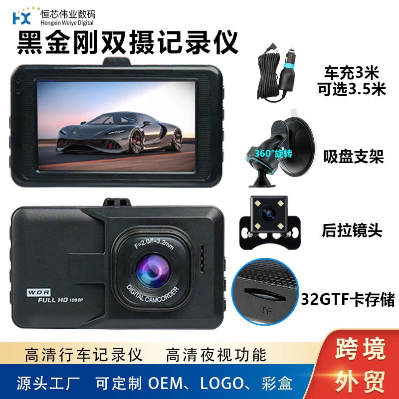 黑金刚单双录行车记录仪定制720P高清夜视汽车倒车载dvr3寸记录仪