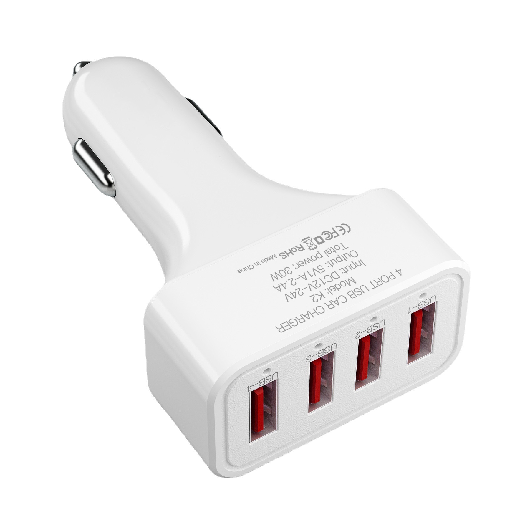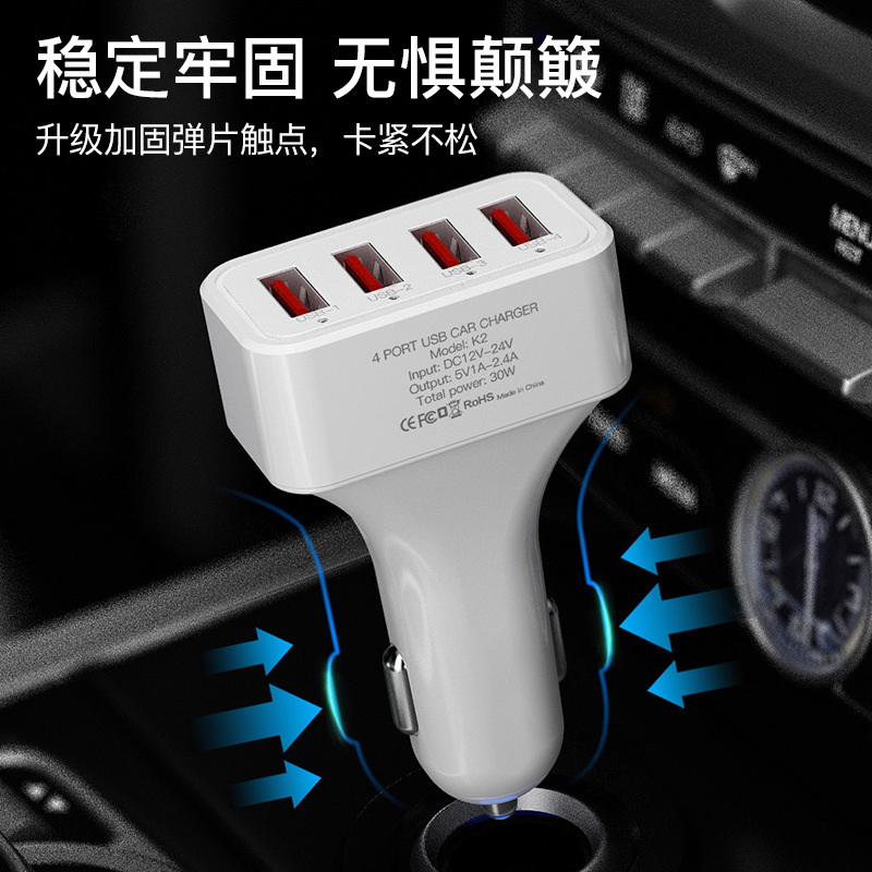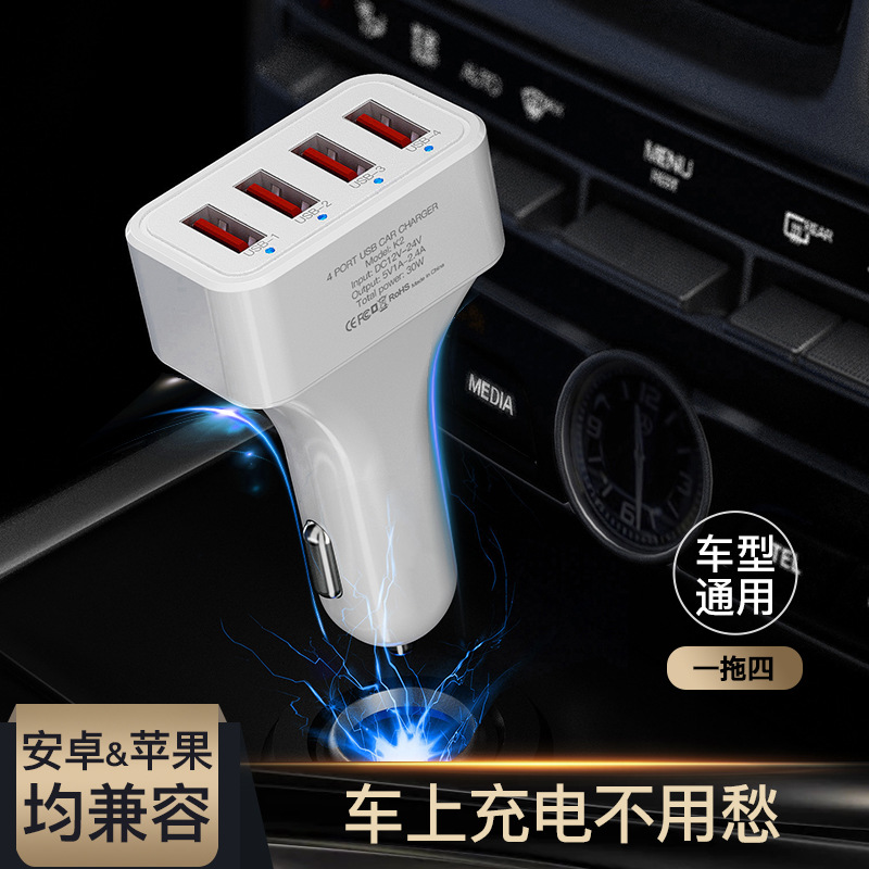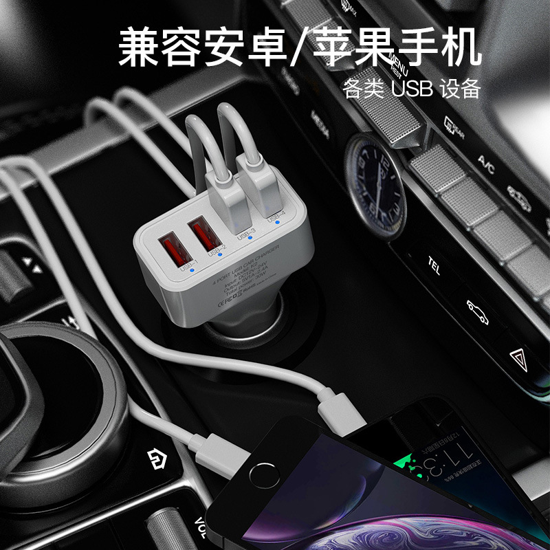 车载充电器4口usb快充手机5V2.4A汽车多口充电器多孔充电头批发厂
