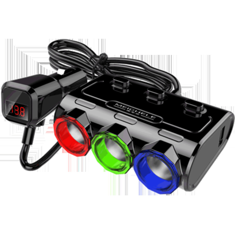 汽车车载一分三点烟器充电器 双USB1.1+2.1A 带开关 电压检测