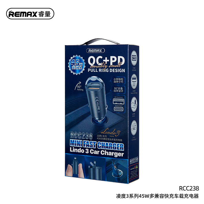 REAMX Remax 45W Multi-compatible Fast Charging Car Charger Cigarette Lighter USB Charger RCC238