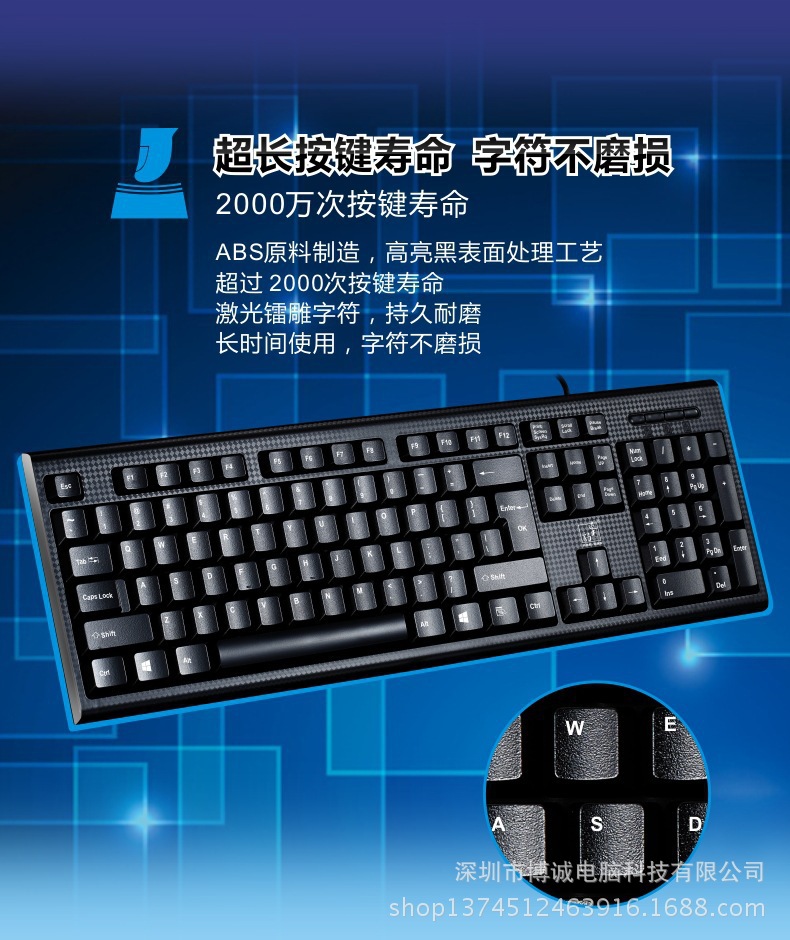 追光豹Q9 有线键盘USB办公商务台式机笔记本通用圆口扁口键盘防水