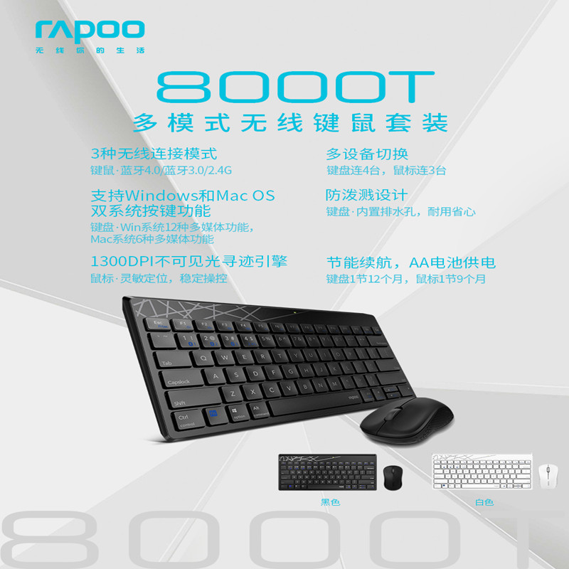 正品雷柏8000GT无线蓝牙省电笔记本台式电脑便携鼠标键盘套装