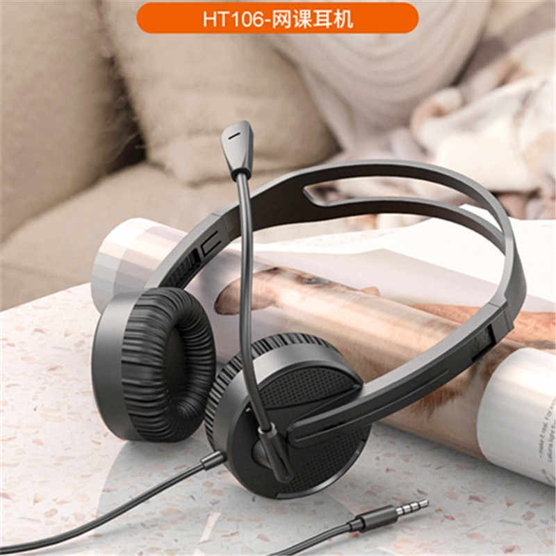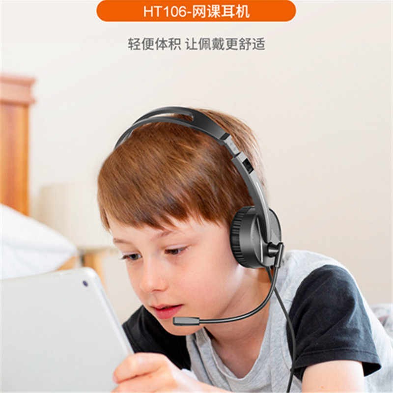 跨境 来酷HT106有线头戴式耳机耳麦网课单孔笔记本台式电脑亚马狲