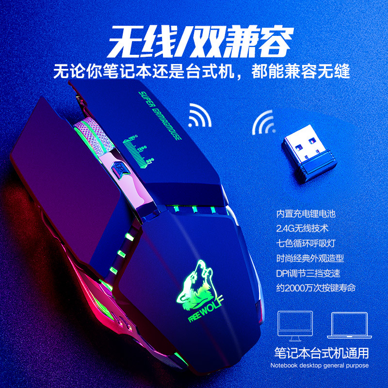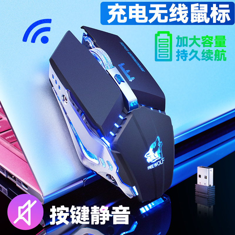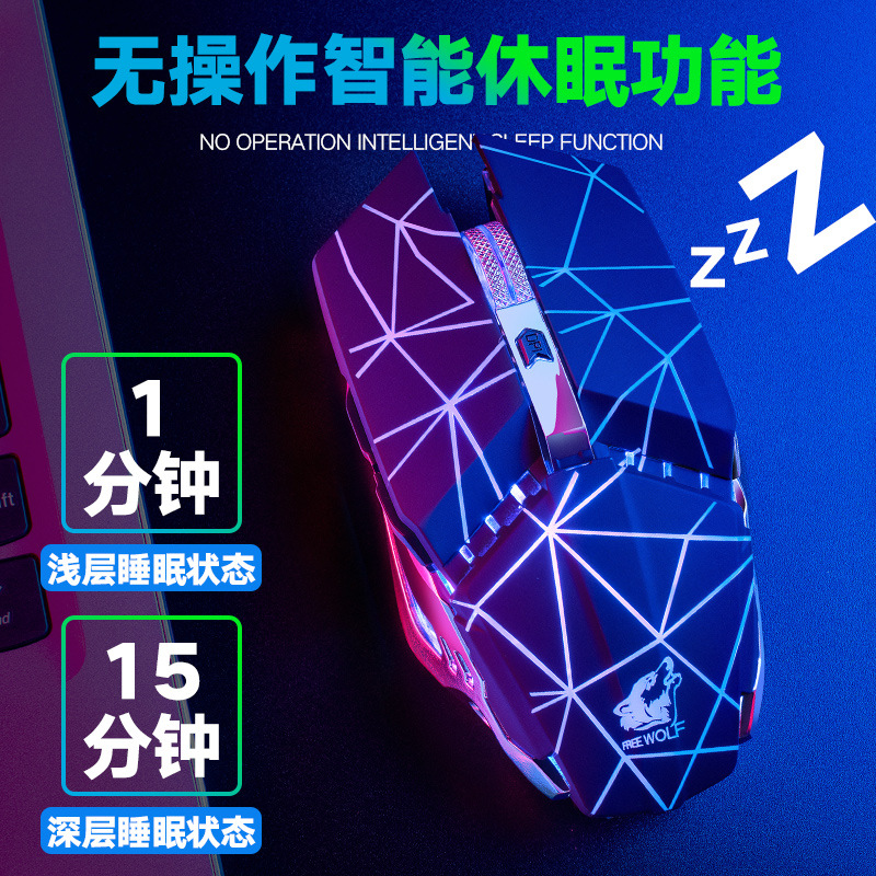 自由狼X11 静音无线鼠标充电式发光机械游戏鼠标亚马逊速卖通ebay
