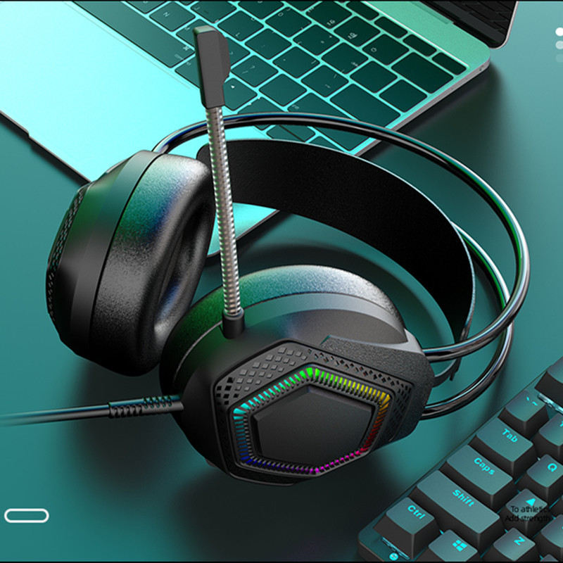 R601 头戴式电脑耳机台式电竞游戏RGB发光耳麦7.1USB有线跨境虾皮