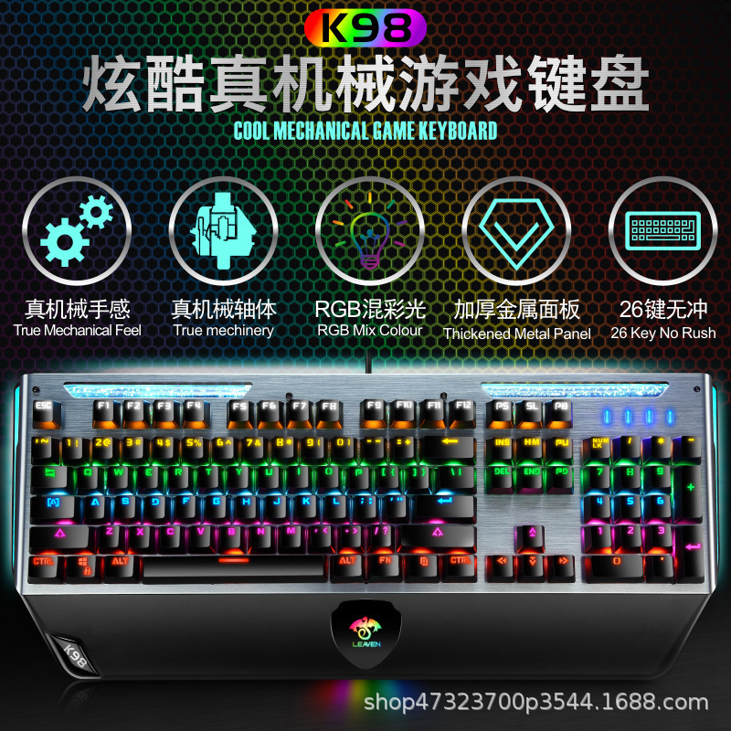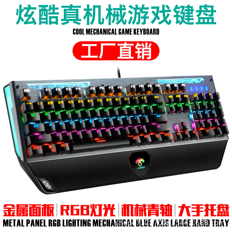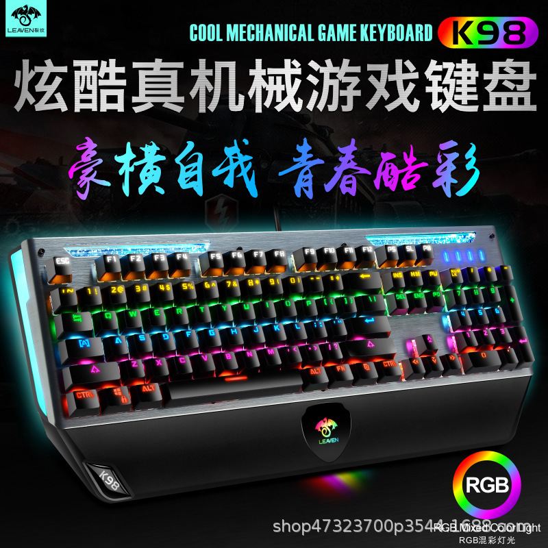 裂纹K98炫酷真机械USB有线游戏发光RGB电脑青轴机械键盘ebay跨境