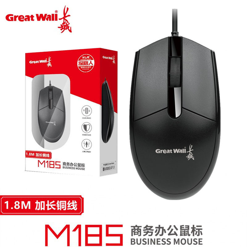 适用于长城M185电脑家用办公竞技游戏1.8米线静音有线usb光电鼠标 补货中