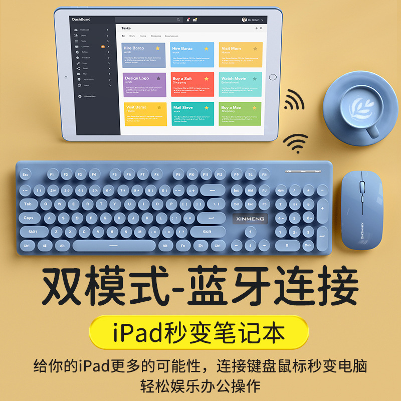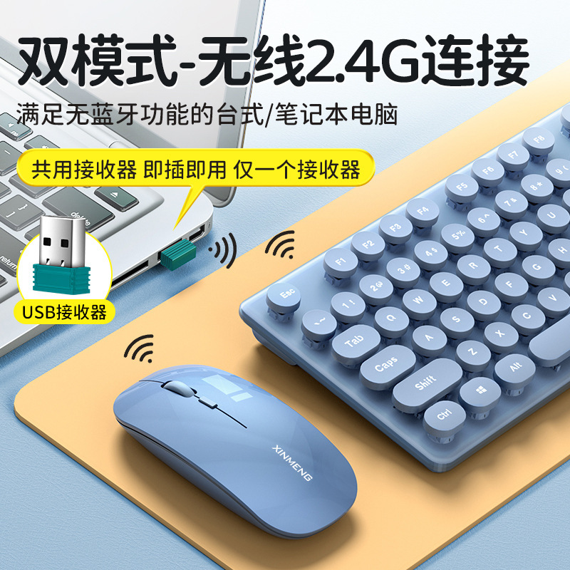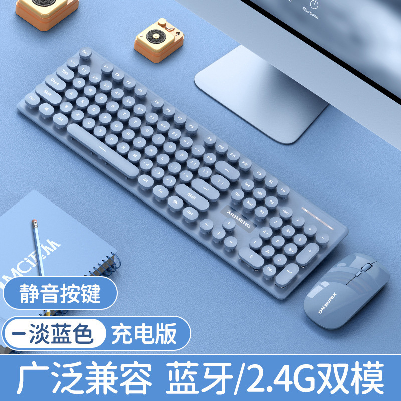 新盟N520可充电无线键盘鼠标套装蓝牙双模静音女生笔记本电脑键盘