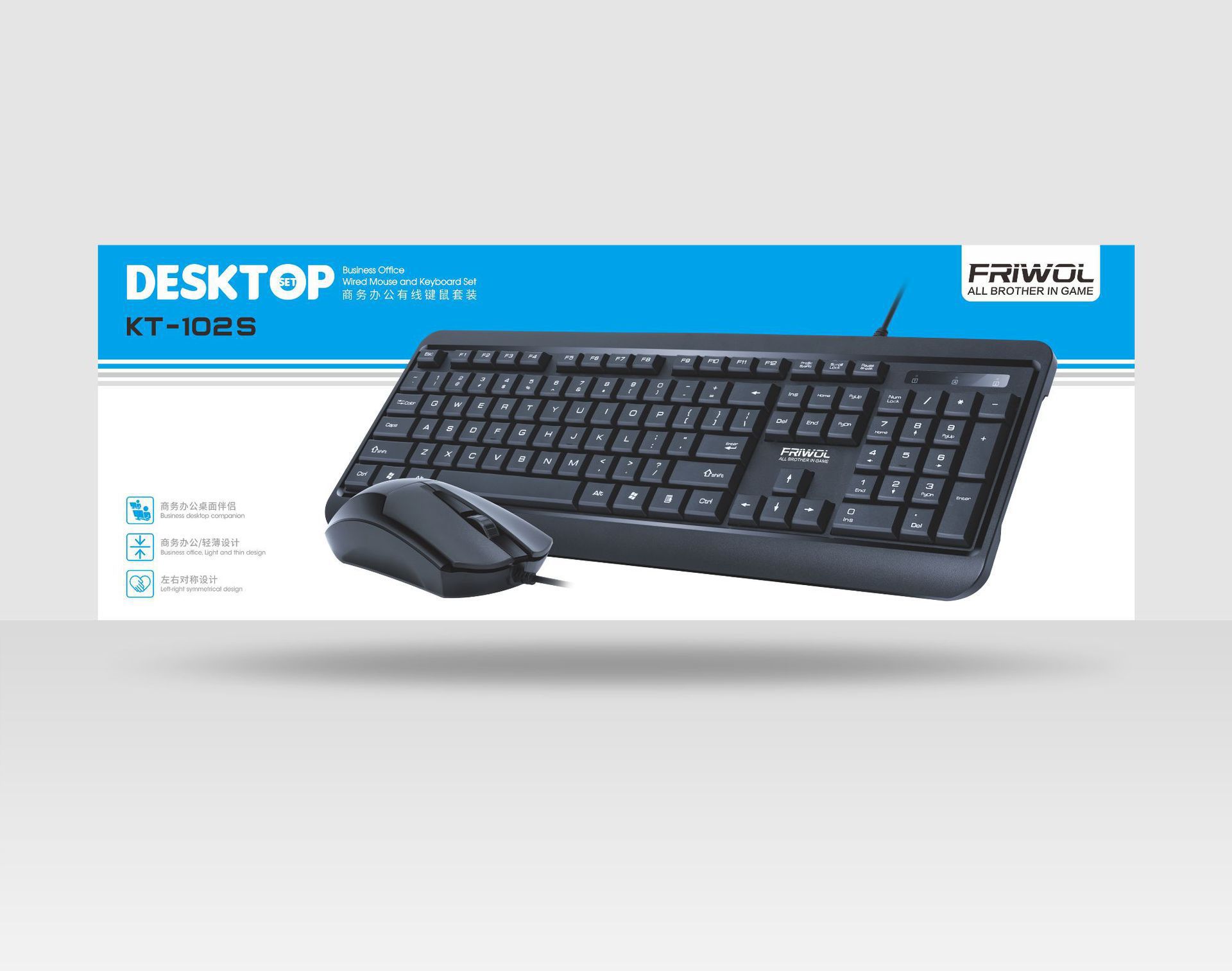 友狼KT102 有线键盘鼠标套装办公商务台式电脑笔记本防水键盘鼠标