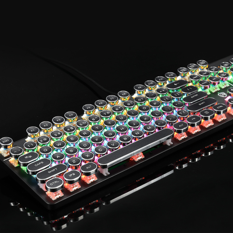 蒸汽朋克复古hjk900真机械有线键盘青轴网吧网咖游戏电竞LOL 跨境