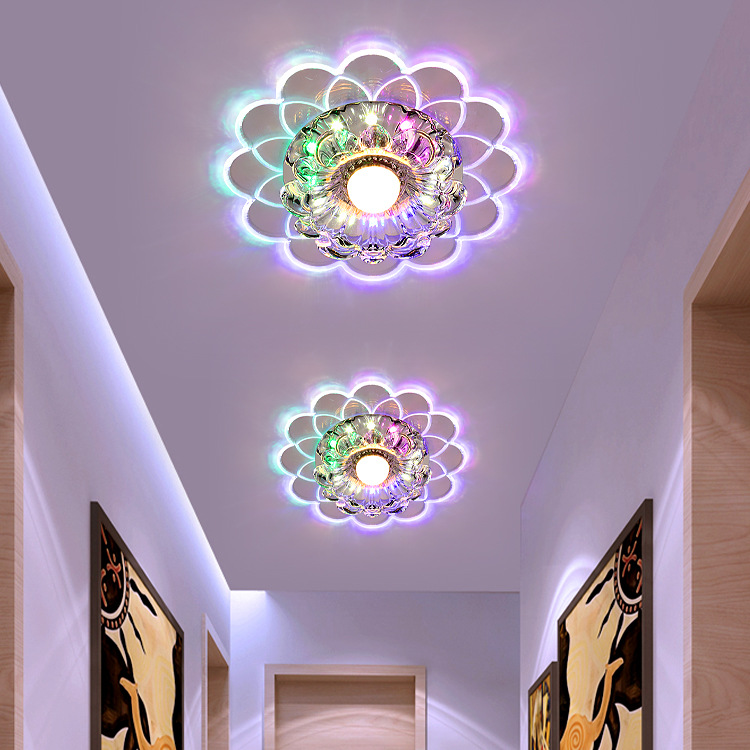 创意led水晶过道灯七彩走廊射灯个性门厅入户玄关灯客厅吊顶筒灯