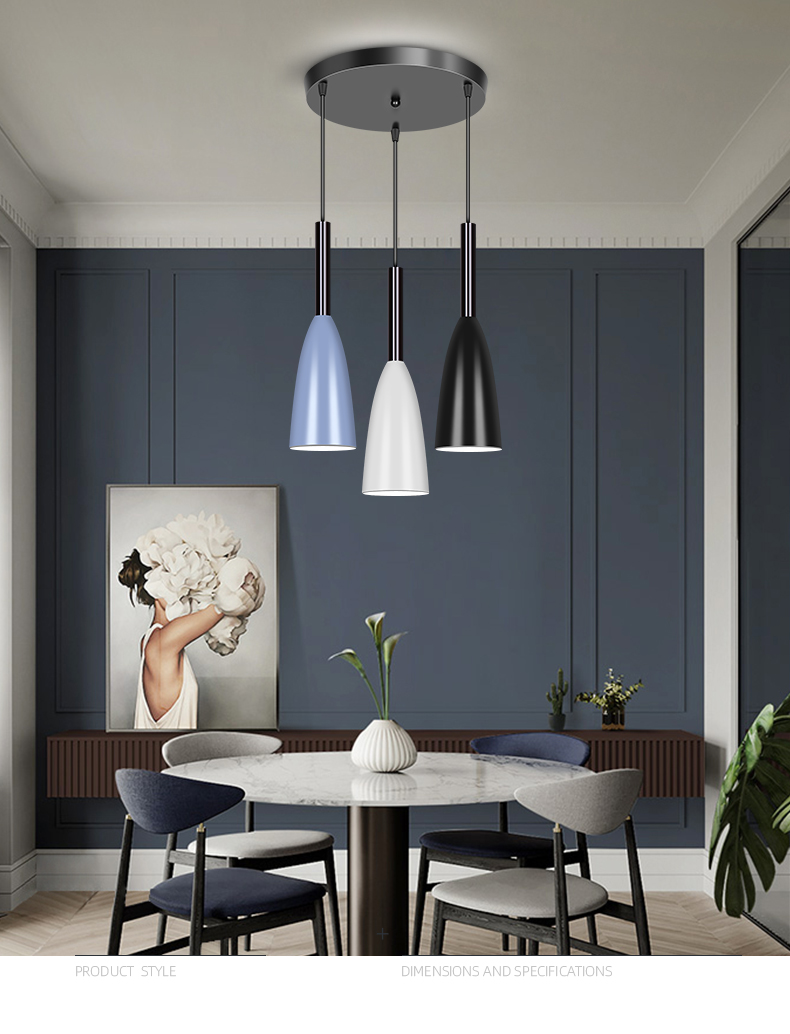 包装清单 北欧黑白灰马卡龙色三头铁艺餐厅吊灯个性玄关吧台灯床头小吊灯
